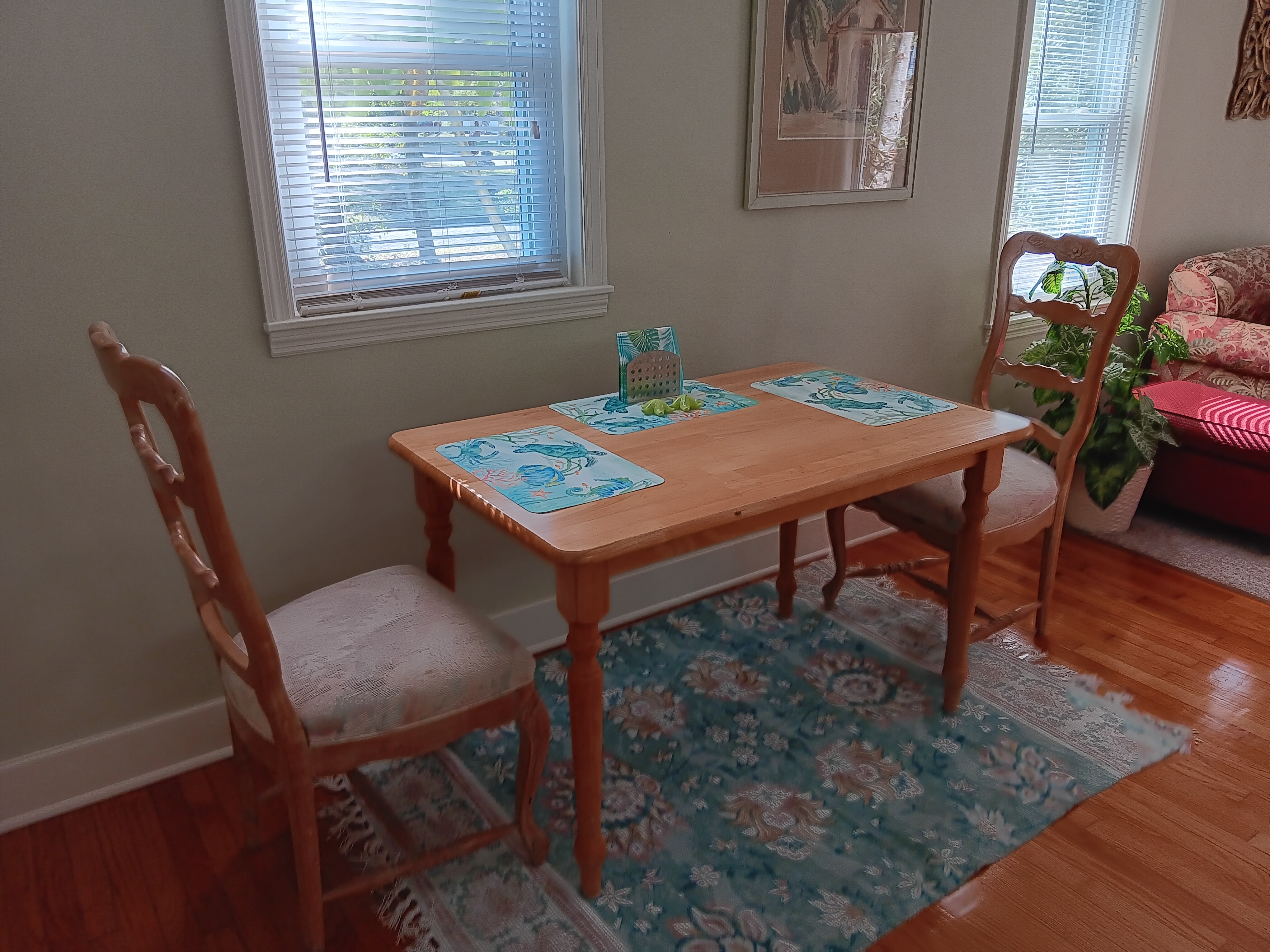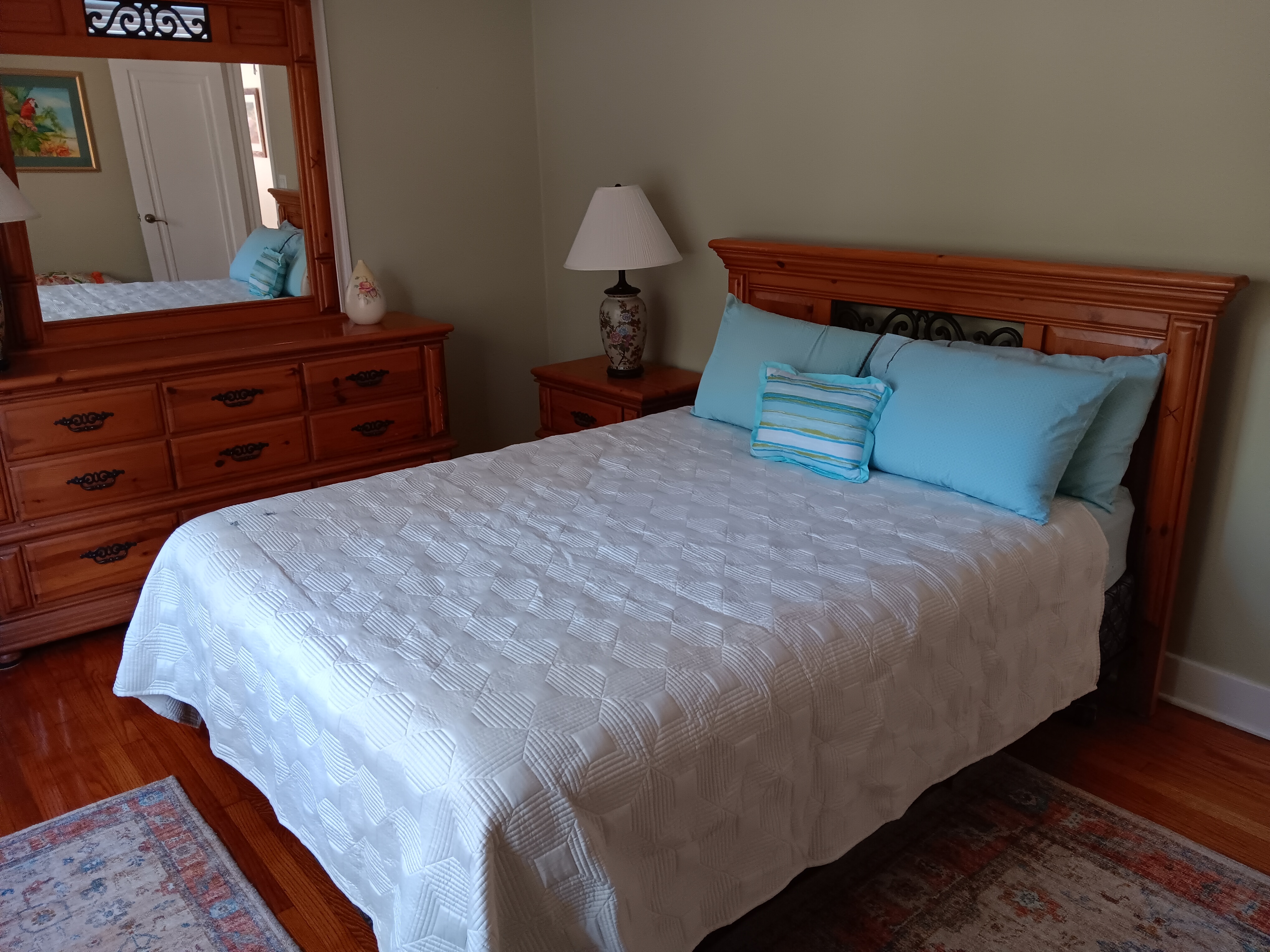 There is a private fenced yard with a Bar-B-Q grill and picnic table. The lovely yard has amazing trees, groves of
